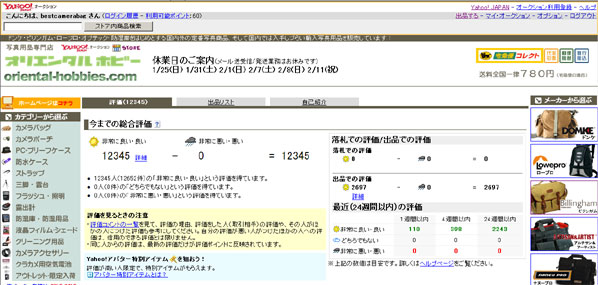 オリエンタルホビー Yahooオークションストアの評価が12345と